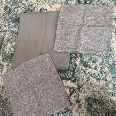 3kpl tyynynpäällisiä. Yksi hopeinen paljetti, musta kuvioinen ja vaaleanharmaa jossa valkoisia palloja(tässä tarkasti katsottuna haalea tahra). Kaikki yht 3€.