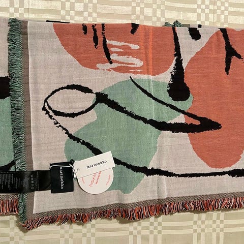 Myydään uusi paketissa oleva Marimekon Hennika viltti/huopa. Koko 120x180.