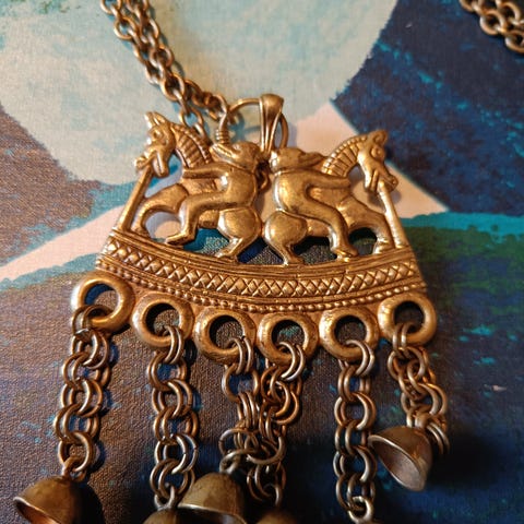 Myydään Kalevala korun hevosaiheinen pronssinen kaulakoru. Iästä ei ole varmaa tietoa, mahdollisesti 70-, tai 80- luvulta. Vähän käytetty, hyvässä kunnossa oleva koru.