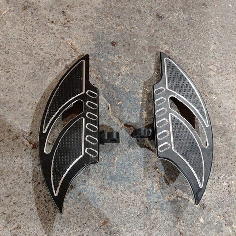 Kaksi paria uusia mustia astinlautoja vaikka harrikkaan tai muuhun customiin tarpeettomana. H. 55e / srj. Satkulla kaikki.