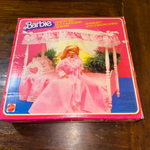 Barbien olohuonesetti vuodelta 2005. Mukana sohva, hylly, stereot ja DVD-soitin. Hyllyssä ja steroissa jälkiä. Kaikki muovia. Nukke ei tule mukaan.