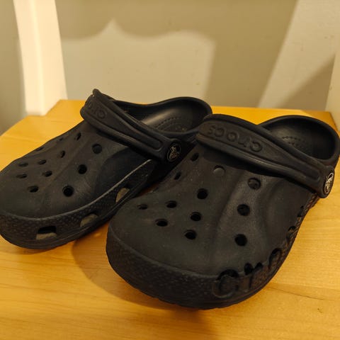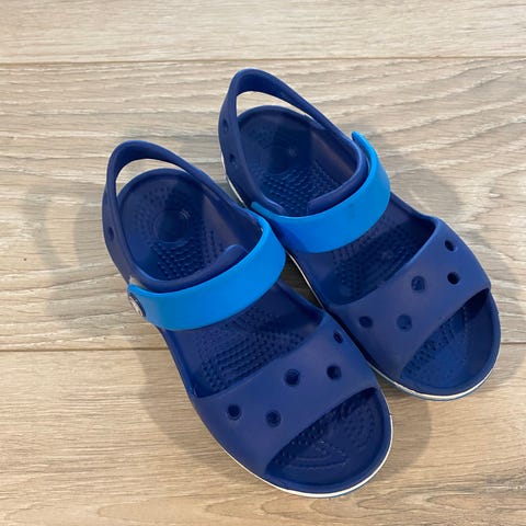 Myynnissä lasten Crocs-sandaalit, koko C11 (EU 28–29).