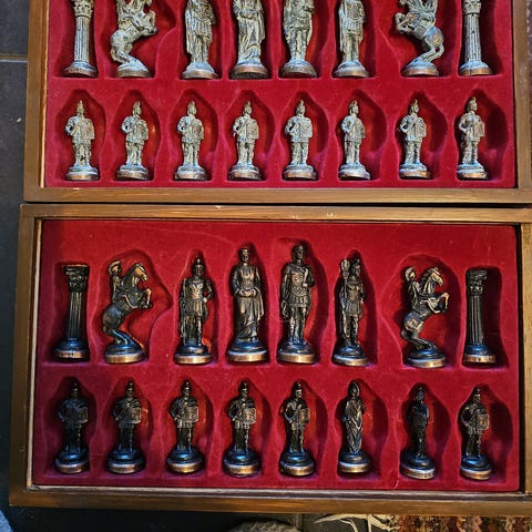 Nappulat kuvastavat historiallisia hahmoja ja ovat painavia, arvokkaan tuntuisia.
