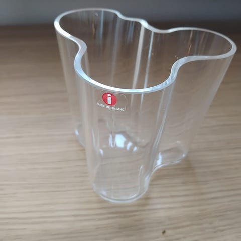 Iittala, Aino Aalto maljakko, harvinaisempi vedensininen väri. Korkeus 165 mm. Pohjassa konesigneeraus ”Aino Aalto Iittala”. Siisti ja hyväkuntoinen, ei vikoja.