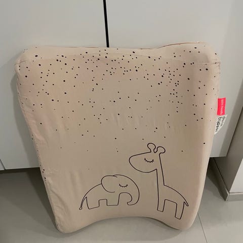Done by deer hoitopöydän alusta. Päällinen irrotettavissa. Päällinen muovimaista kangasta, joten on helppo pitää puhtaana ja kuivana. Printti haalistunut, muuten hyvässä kunnossa ja edelleen jämäkkä.