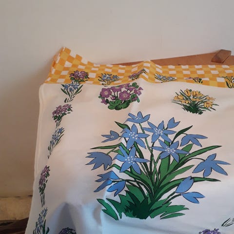 1 kpl Pelmet Midsummer verhokappoja, koko 250x45 cm. Kaunis niittykukkakuvio. Toinen (eli kuvassa oleva avattu) paketti on myyty.