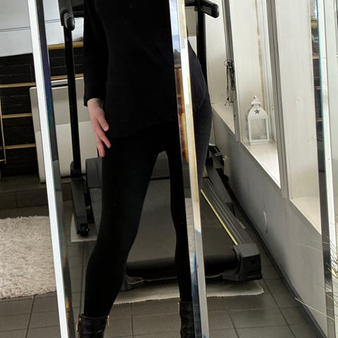 Yläosa pitsiä sekä edestä että takaa. Toinen (alempi) napeista puuttuu, ei vaikuta käyttöön. Rintojen alla kuminauha. Läpinäkyvää materiaalia.