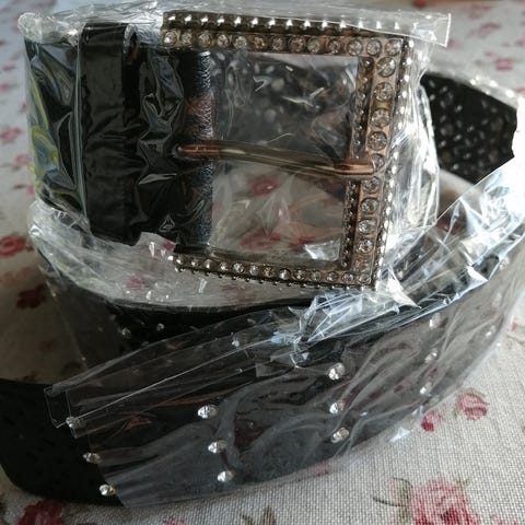 Bling bling vyö jossa paljon yksityiskohtia. Mahtuu kokoa S-L / 36-46 kokoa käyttävälle.