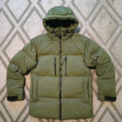 Didriksons Talvitakki on miesten talvitakki, koko S, väriltään vihreä. Takissa on useita vetoketjutaskuja ja säädettävä huppu. Materiaalista ei ole tarkempaa tietoa, mutta takki on suunniteltu tarjoamaan suojaa kylmiltä säiltä.