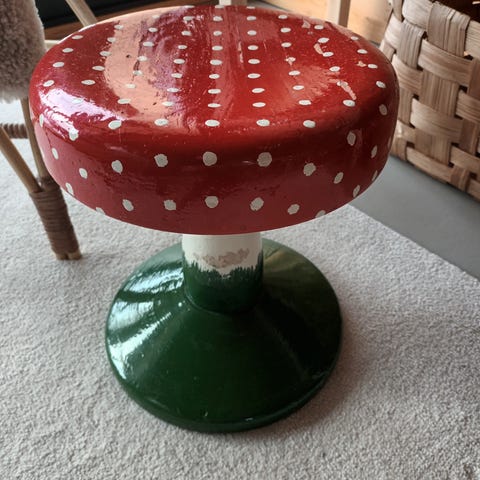 Vanha ja alkuperäiskuntoinen kärpässienijakkara. Korkeus 30cm.