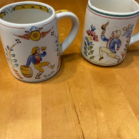 Yhdestä lohjennut pala ja muissakin on kulumaa mutta yleisilme on varsin siisti.