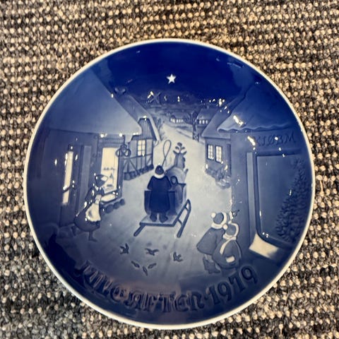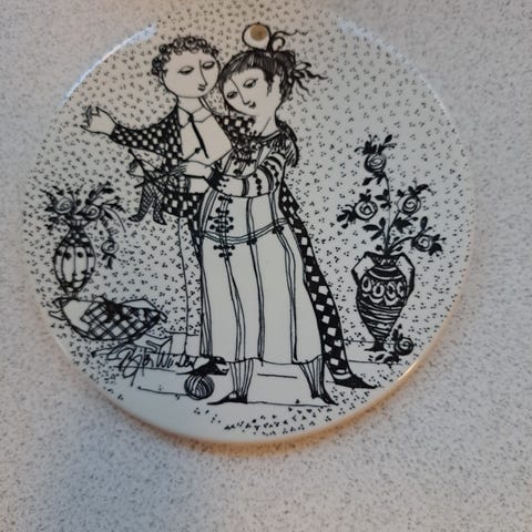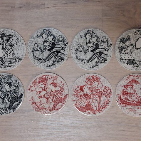 Juli Nocturne koristeellinen seinälautanen, jossa punainen kuviointi. Lautasessa on reikä ripustamista varten.