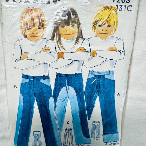 Vanha avattu ompelukaavapakkaus. Säilytyksessä hieman taittunut mutta ymmärrettävästi ehjä. Kts. kuvat. Mukana jonkun aikanaan leivinpaperille yms. tekemiä kaavakokoja merkintöineen.