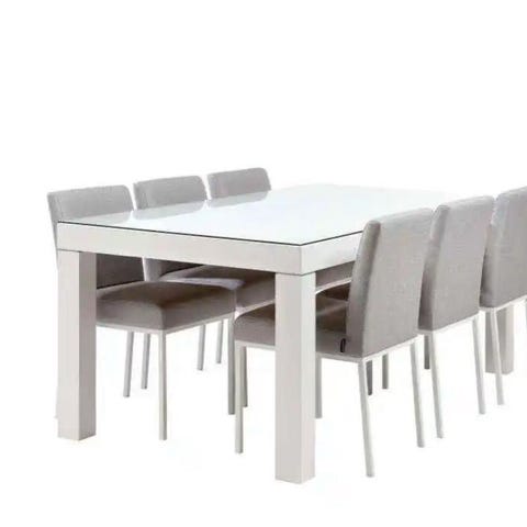 Pohjanmaan Kalusteen klassinen Elise ruokapöytä kirkkaalla lasikannella.