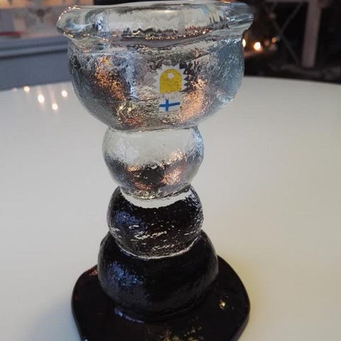 Kirkas/ruskea Humppilan Pertti Santalahden suunnittelema Kivi-set kynttilänjalka. Singeerattu.