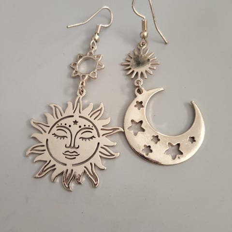 Boho/90s/goottityyliset aurinko ja kuu korvikset