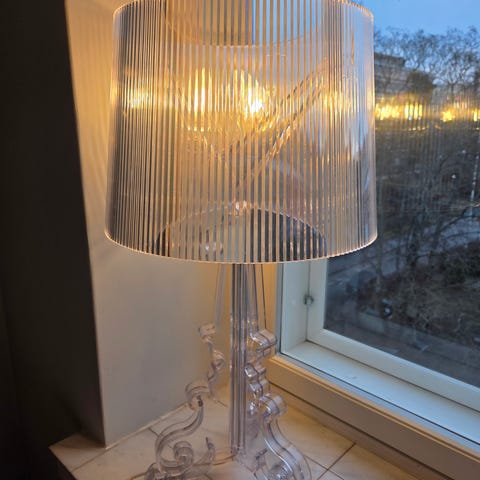 Kartell Bourgie pöytävalaisin himmentimellä. Tämä yksilö on kokenut kovia, mutta toimii kyllä! En lähetä ettei koe vielä kovempia, mutta saatanpa kuljettaa lisämaksusta pk-seudulle :)