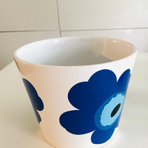 Marimekko iso Unikko ruukku /suojaruukku / kulho. Korkeus 14 cm, halkaisija 17 cm. Hyväkuntoinen, lasitus täysin ehjä.