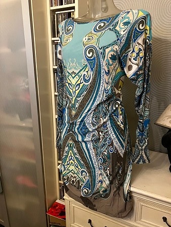 Uutta kotia etsii kuvan upea joustavaa laskeutuvaa polyester/viskoosia oleva mekko