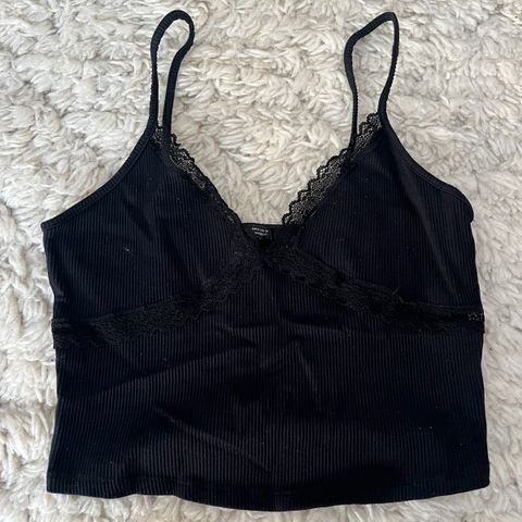Bershka metallilankainen kimaltava joustava toppi pääntien yksityiskohdalla ja olkatoppauksilla. Oversize mallinen