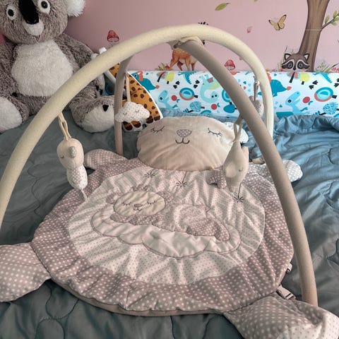 Suloinen pupun muotoinen leikkimatto. Maton alapuoli on liukumatonta materiaalia, joka pitää maton paikoillaan. (Ovh. 54,95e)