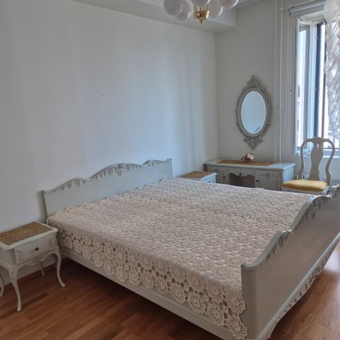 Talonpoikaisrokokoo parisänky (160cm) ja yöpöydät