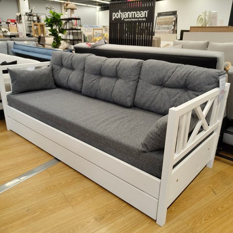Myydään siistikuntoinen koivupuinen vuodesohva. Leveys 201 cm. Vuoteen koko 190 x 140 cm. Patjat ja tyynyt on hyvässä kunnossa. Ne on uusittu pari vuotta sitten.