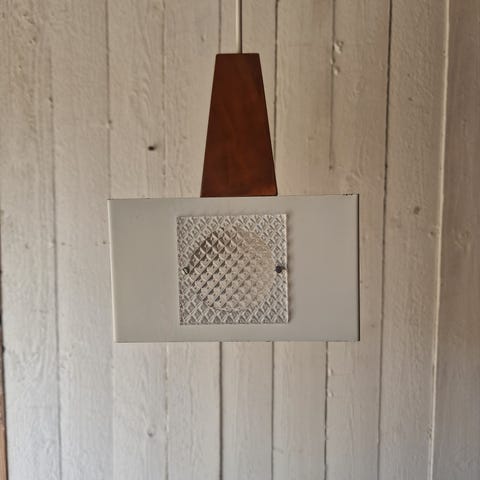 Hakusanat: Valaisin valaisin retro design suunnittelija 60-luku 70-luku retro vintage sisustus design nostalgia valaisin lamppu valo metalli keittiö valaisin punainen pelti valkoinen