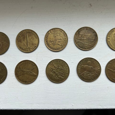 SHELL Lentävä maailma , Lentävien supermiesten historia. 20 Mitalia/Shell polettia. Kunto kuvissa.