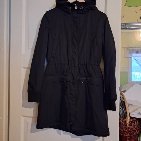 Peak Performance Pitkä takki sininen, koko S, naisten malli. Takki on ns. Parkatakki ja sopii viileämpiin olosuhteisiin.