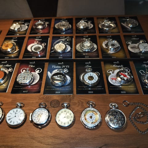 30 erilaisen taskukellon kokoelma