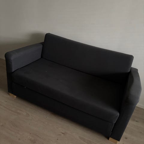 Puurunkoinen vuodesohva. Vuoteen koko 140x195. Sohvan leveys 156cm syvyys sohvana 86cm korkeus 97. Mukaan myös sohvan alle vuodevaate laatikko pyörillä.