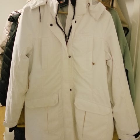 Vain muutamia kertoja käytetty kauniisti istuva takki. Kaksisuuntainen vetoketju, säädettävät hihansuut. Kaksi taskua, joissa nappikiinnitys. Verkkovuori. Säätömahdollisuus vyötäröllä. Vedenpitävä, mutta hengittävä. Nouto tai postitus. Toridiili onnistuu myös.