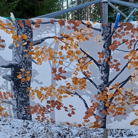 Vallilan käytetty verhokappa. Kuosi "Saaristossa". Koko 244cm*59cm.