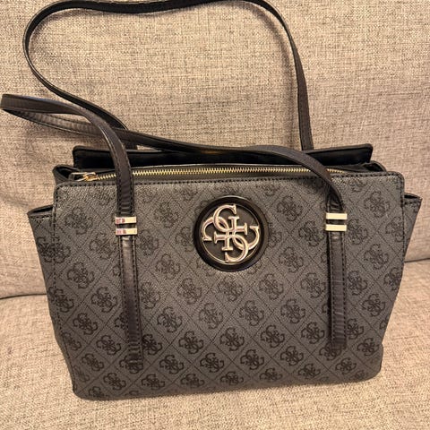 Upea eläinkuosinen käsilaukku. Säädettävä syvyys, koko noin 28x25x10. Mukaan Guessin dust bag. Sisällä taskuja, kahvassa Guessin pörröinen riipus.