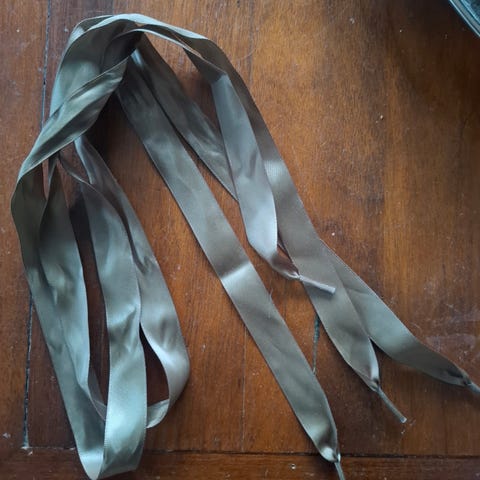 Valkoiset 140 cm pitkät kengännauhat . Tahroja on vähän. Ehkä pesemällä lähtee.
