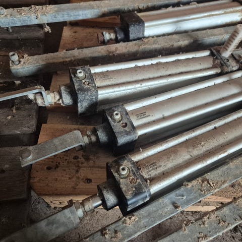 Paineilmasylinteri, paineilmaventtiili, magneetti venttiili, pneumatiikka.