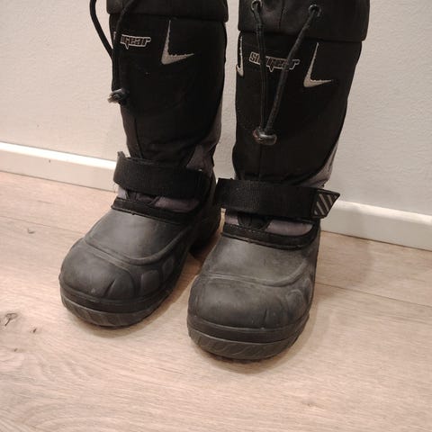 23 cm jalalle, erittäin hyvässä kunnossa olevat kelkkailu. ym saappaat, joissa irroitettava sisäkenkä ja huopapohjallinen.Mukava jalassa ja kengällä on helppo kävellä.