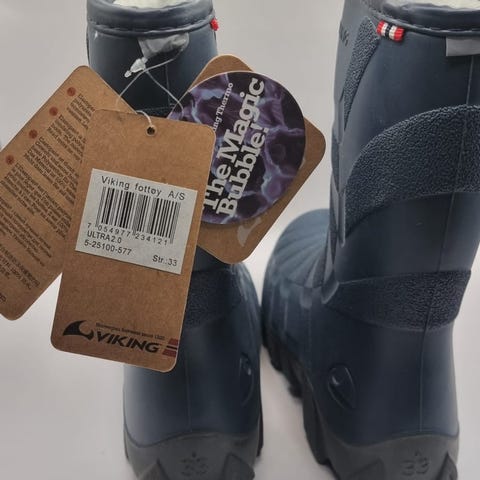Uudet Viking Iiris talvikumisaappaat koko 33. Siro malli tytöille, neulottu varren yläosa, huopavuori, heijastimet takana ja säädettävä solki sivulla. Pohjassa on kuvioitu pito.