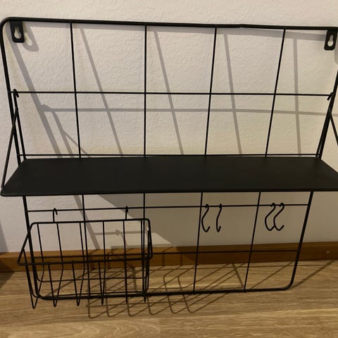 Tyylikäs ja monikäyttöinen metallinen, valkoinen seinähylly valolla. Kiinnitys seinään ruuvattavilla koukuilla (kuva 4).