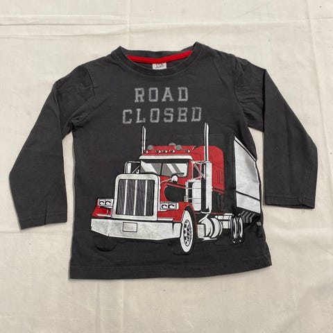 Kiki & Koko merkin sininen lasten pitkähihainen paita koossa 104 cm. Paita on valmistettu puuvillasta ja sopii pojille. Edessä on kuvituksena kuorma-auto ja teksti "Attention Construction Going On".