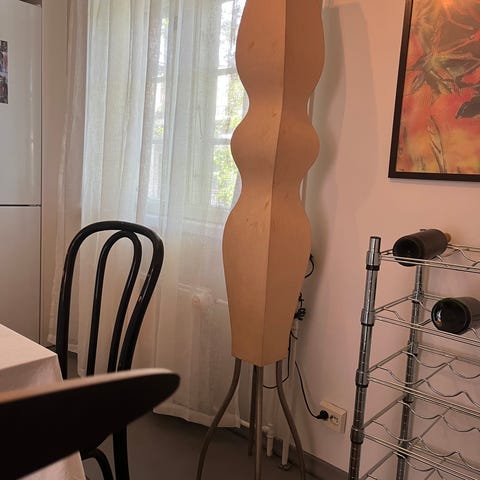 Myydään suunnittelija Louis Poulsenin muistuttavaa lattiavalaisinta. Tavallinen pistorasia.
