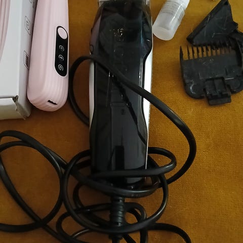 Koiran trimmausharja paksulla varrella. Käytön jälkiä ja väri haalistunut, mutta toimiva laite.