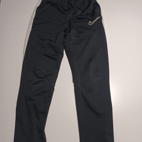 Nike Lasten housut koossa 134- 146 cm, väriltään hyvin tumma luumu, lähes musta. Housuissa on joustava vyötärö, kiristysnauhat ja vaaleanpunaiset sivuraidat. Materiaali on joustavaa.