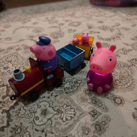 Myydään käytetty mutta ehjä ja siisti pipsa possu johanna jäniksen juna. Sisältää pipsa possu hahmon ja neiti kanin.