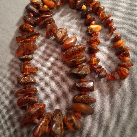 Vanhat kauniit meripihkahelmet, Kaliningrad Ussr 1960-luvulta, paino 72 gr, pituus 62 cm.