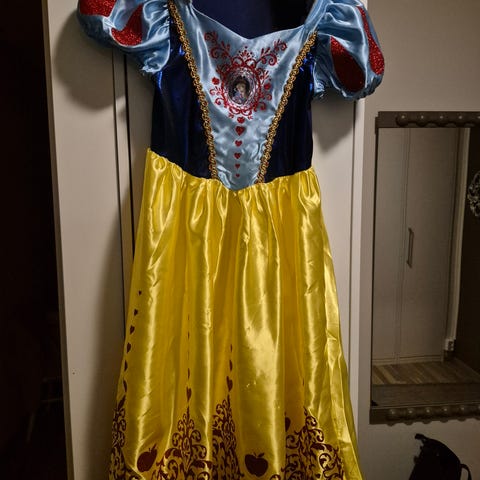 Yhden lapsen yhden kerran käytetty Prinsessamekko. Koko 130cm. Ei ole eläimiä. Nouto Kouvolan keskustasta.