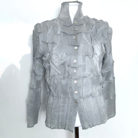 Issey Miyake -tyylinen lyhythihainen paita ja housut