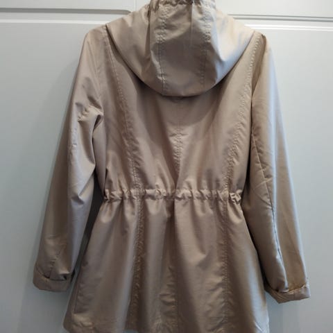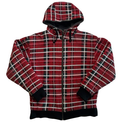 Ruudullinen vuori, huppu ja edessä kaksi neppareilla suljettavaa taskua.