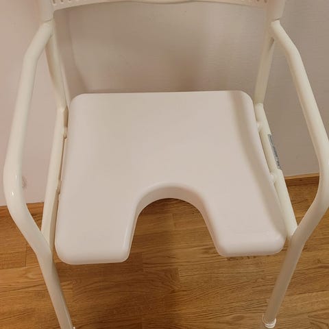 Seinään kiinnitettävä valkoinen pesutuoli. Tuoli taittuu kätevästi kokoon seinää vasten, joten se on ihanteellinen apuväline ahtaaseen suihkutilaan.